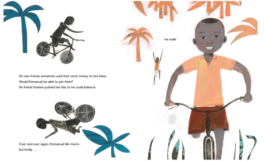Emmanuel knew that he was different from the other children at his school, but he wanted to play with them and do the things that they were doing. He was very clever and extremely determined. Emmanuel found a way to play with his classmates and to learn to ride a bike peddling with just one leg.