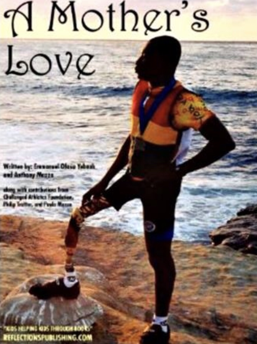 Emmaunuel Ofosu Yeboah is a real person who was born missing part of his right leg. Where he was born in Ghana, children with disabilities were not allowed to attend school like normal children. Emmanuel’s mother, Mama Comfort, was not satisfied with that and insisted that her son would attend school. She carried him back and forth to school until he had grown too big for her to carry. At that point, Emmanuel was determined to keep going to school so he hopped to and from school every day on his one leg.